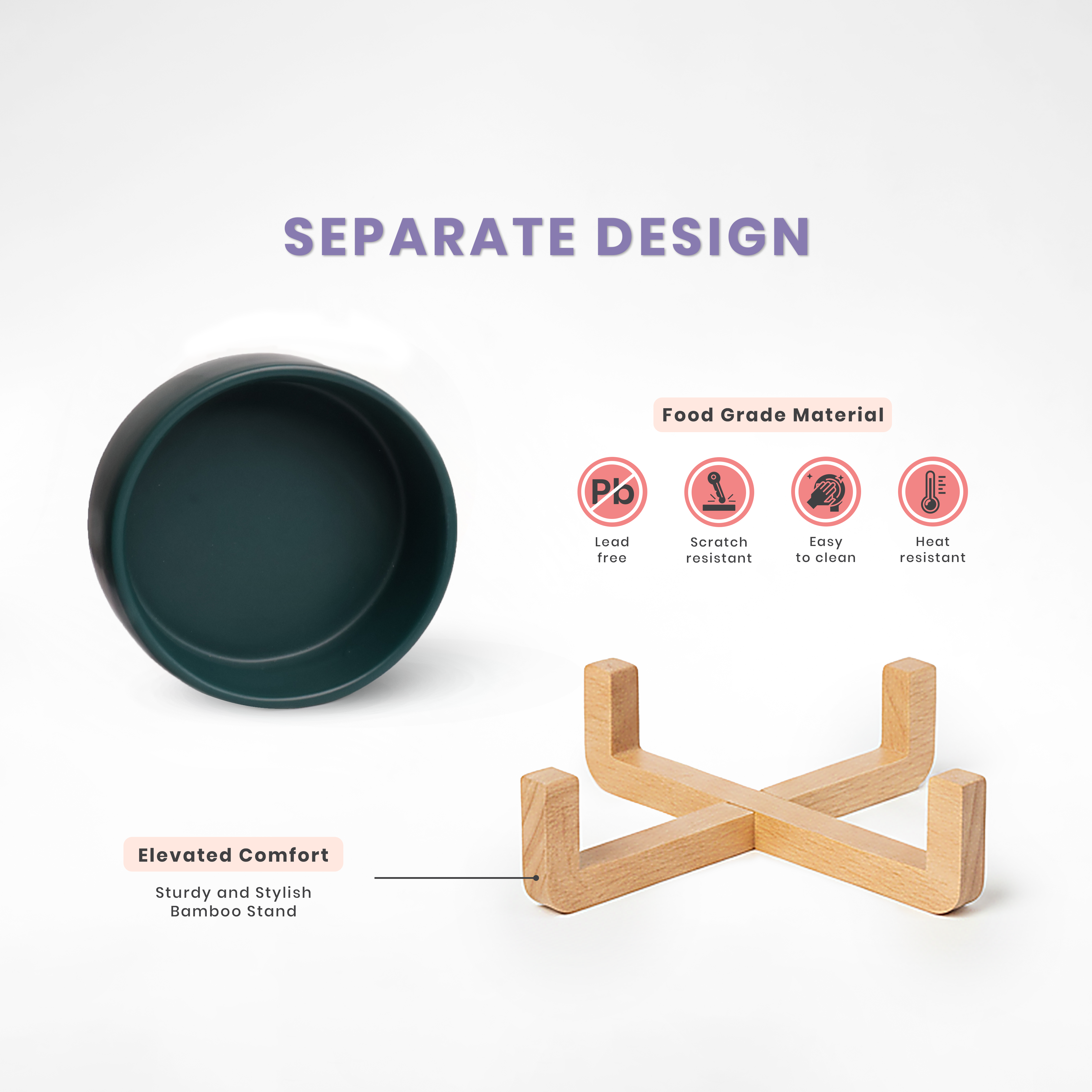 Elegant Wooden Stand Natural bamboo with a sturdy, non-slip base to keep mealtime steady and mess-free.