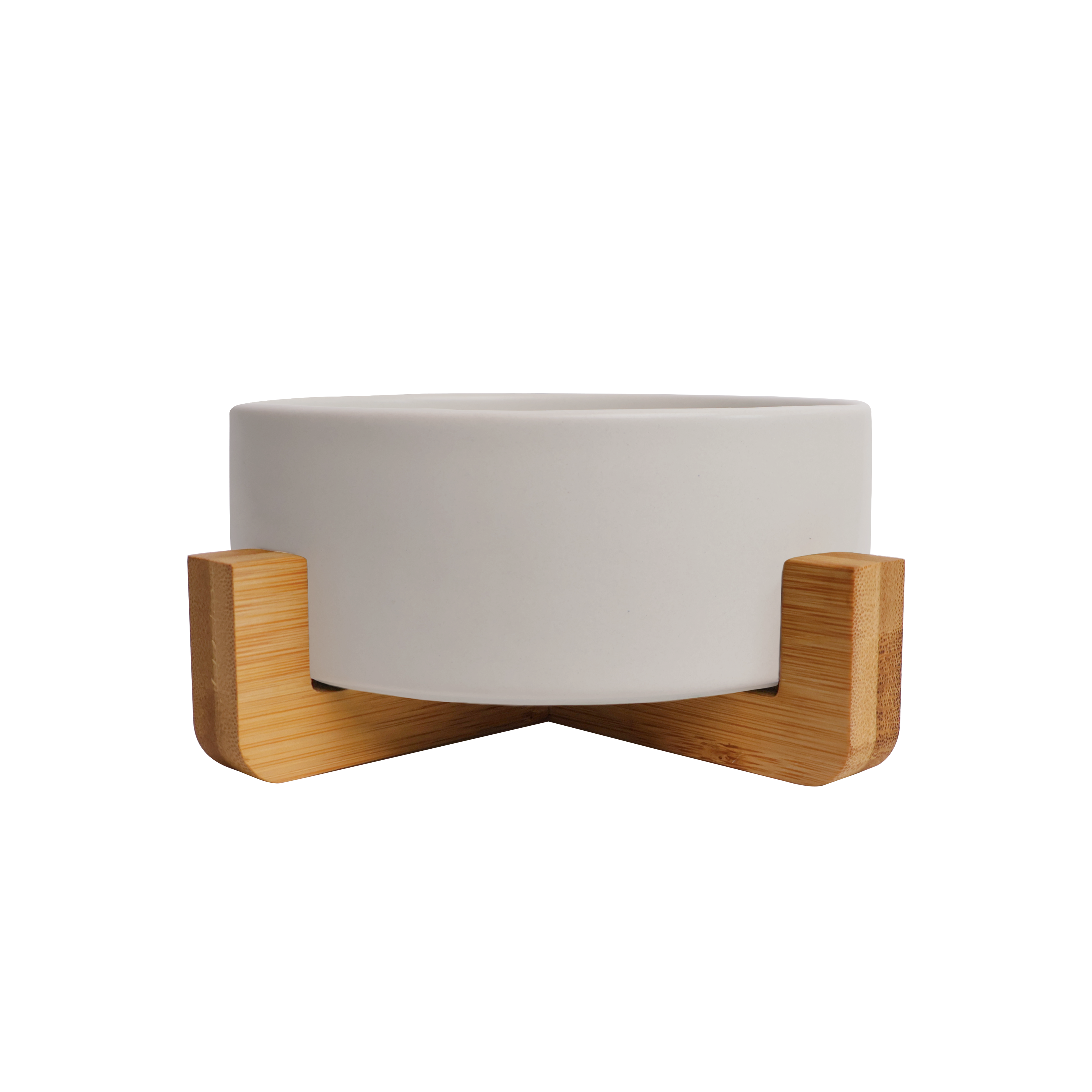 Easy to Clean Glazed ceramic bowl is dishwasher-safe; bamboo stand simply wipes clean.