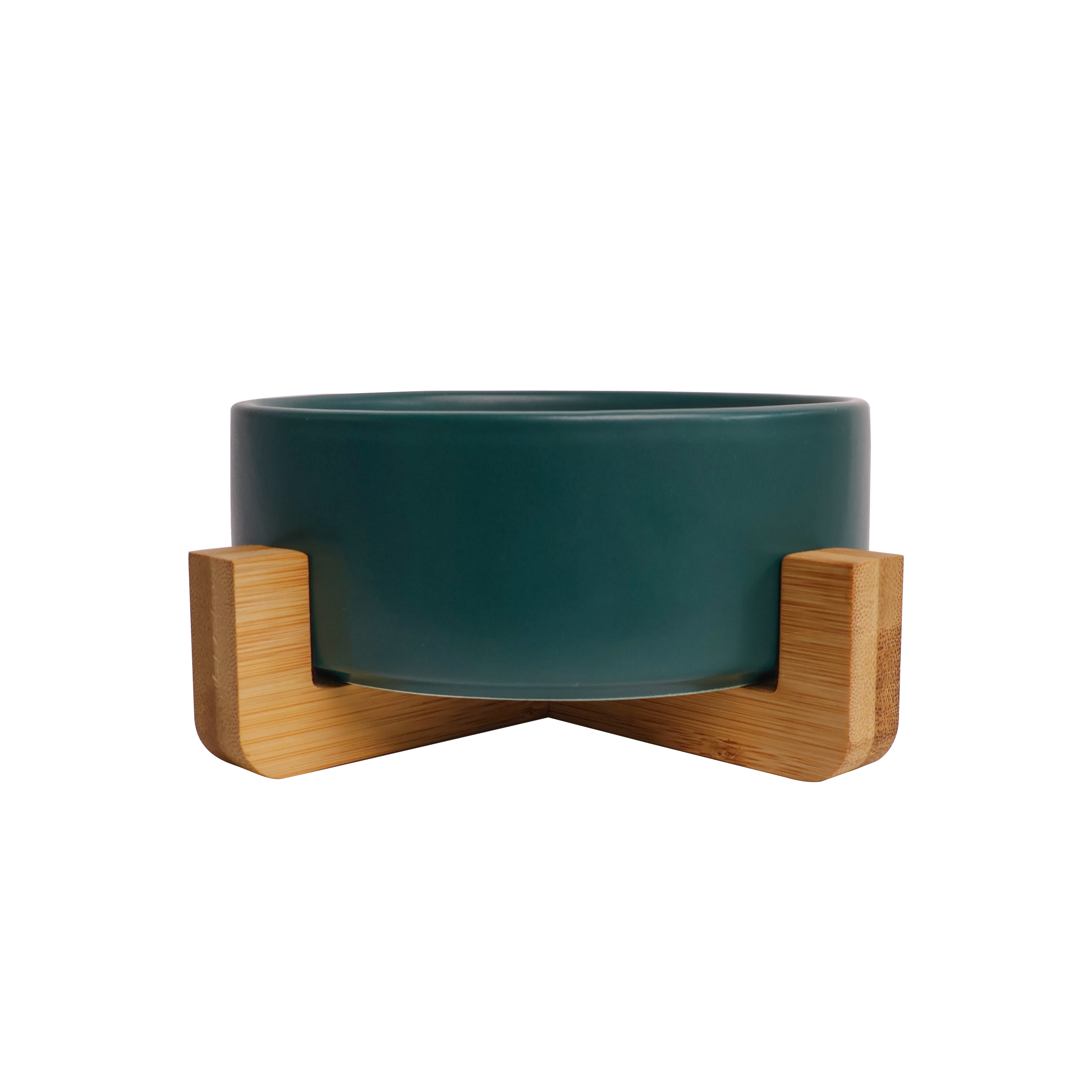 Ceramic Pet Bowl with Bamboo Stand - Green