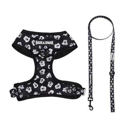 Official Disney Mickey Mouse (Classic Black & White) Dog Harness and Leash Set